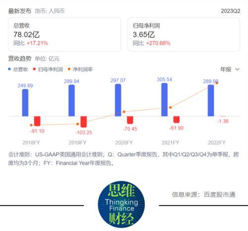 公开资料显示,2018至2022年,爱奇艺营收分别达到250亿元、290亿元、297亿元、305.54亿元、290亿元;净利润分别约为-91亿元、-103亿元、-70亿元、-61.09亿元与13亿元。